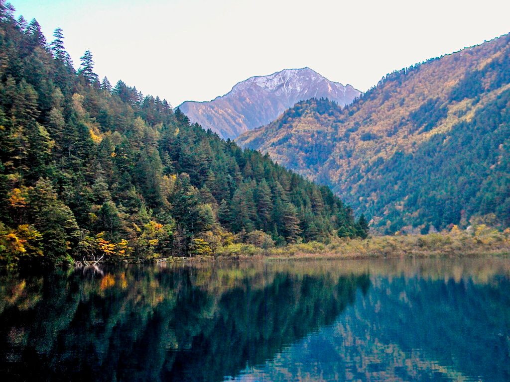 A lake. A big mountain (>4500m, I think). Drizzly weather.