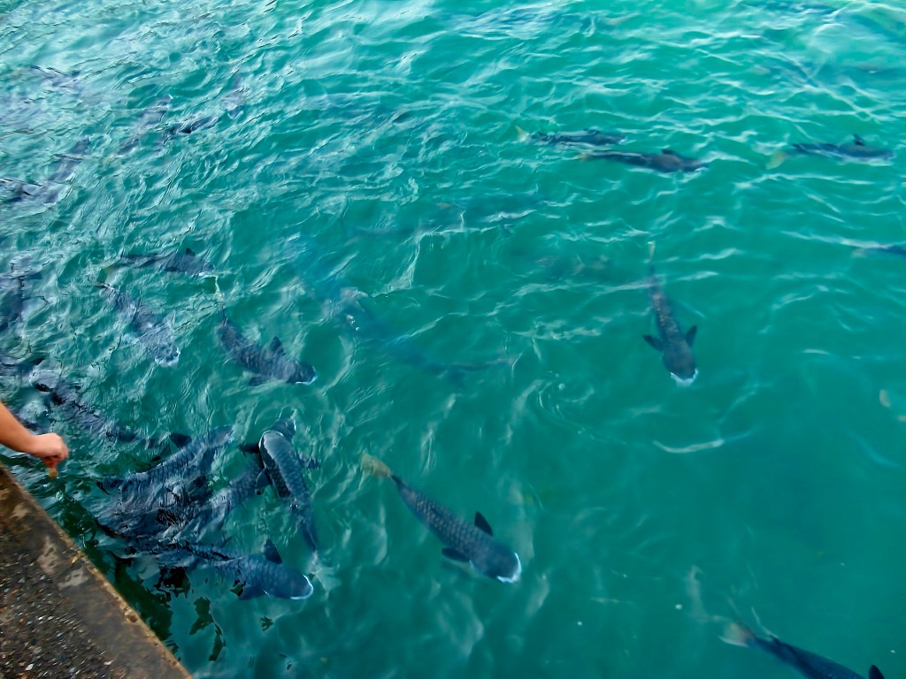 I saw a Barramundi earlier in the day, at “Aquascene”, which is place where you can feed fish in the harbour. You actually can put bread into the fishes’ mouth with your fingers!