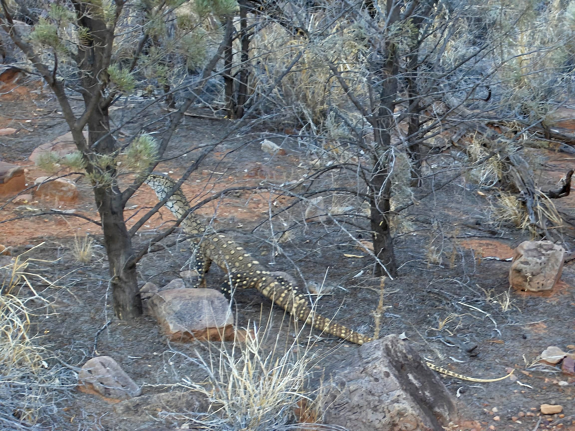 Australia has lots of interesting critters. This morning, during the short trip east, I saw this lizard: