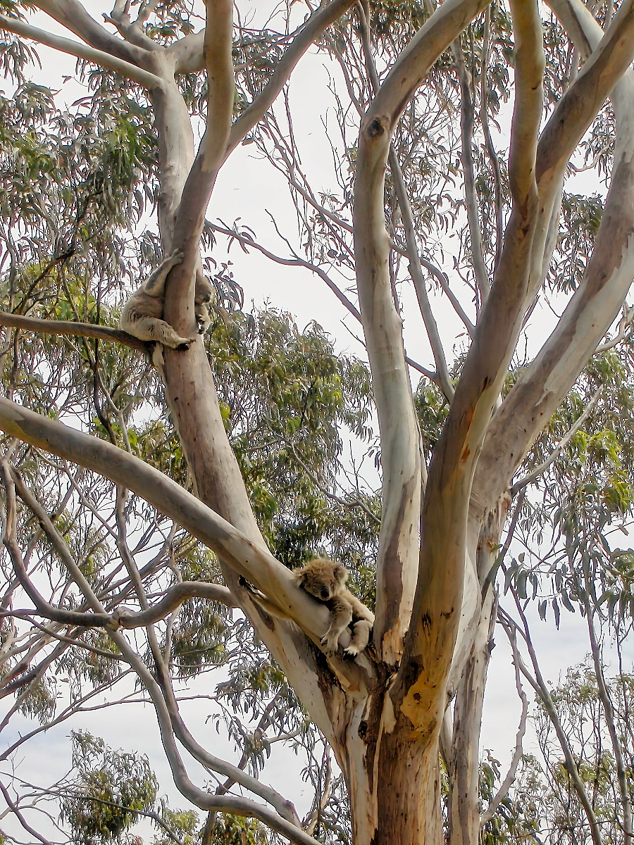 I did see some Koalas”in the wild”, yesterday. They were laying around in some trees, along the “Great Ocean Road”. There was six beasts, in all, including two very small ones, and one “teenager”.