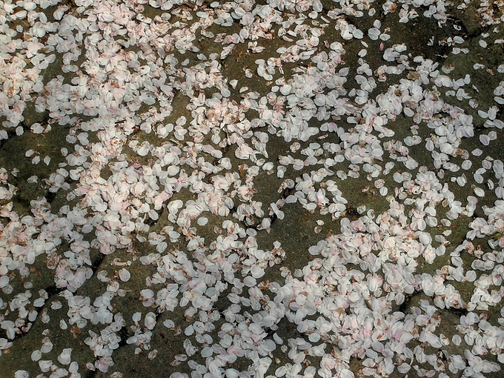The cherry petals are starting to fall in Kyoto. Someone who came from Tokyo said they are mostly gone, there.
