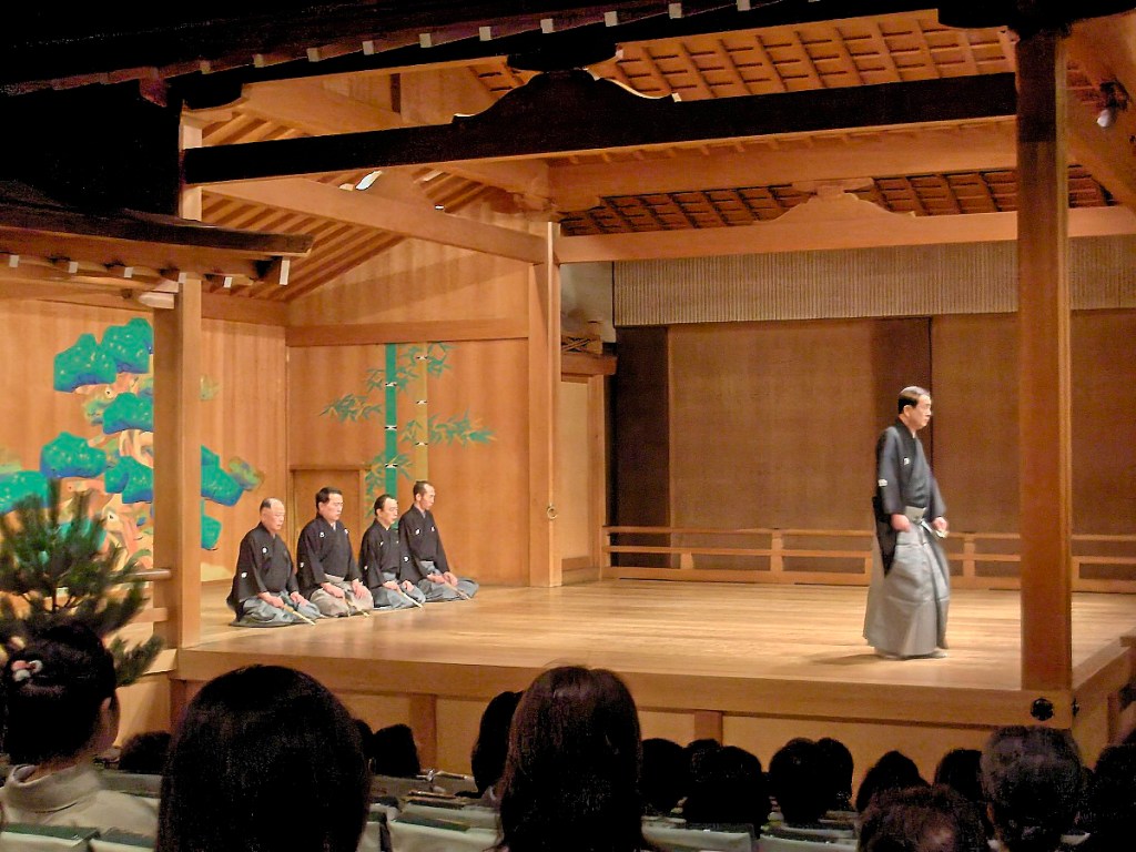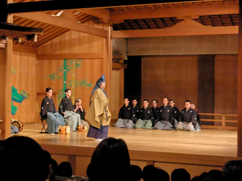 Unfortunately, there was some overlap in the performances. The Noh started at 1:30, and went to 5:00, and the Miyako Odori started at 4:50, but you should arrive 40 minutes early to attend a “tea ceremony” before the show. So, I had to leave the Noh play before it finished.